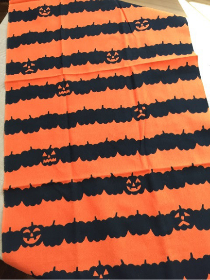 た~の出張を見送りに行く途中、偶然見つけたかぼちゃの縞柄てぬぐい。