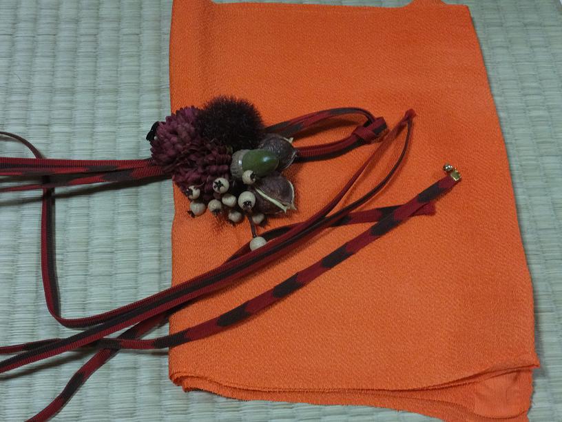 ところが、天王寺MIOの中の「Tokyo 135°」で遂に見つけました。かぼちゃ色のちりめん。中古なので1000円。安い!