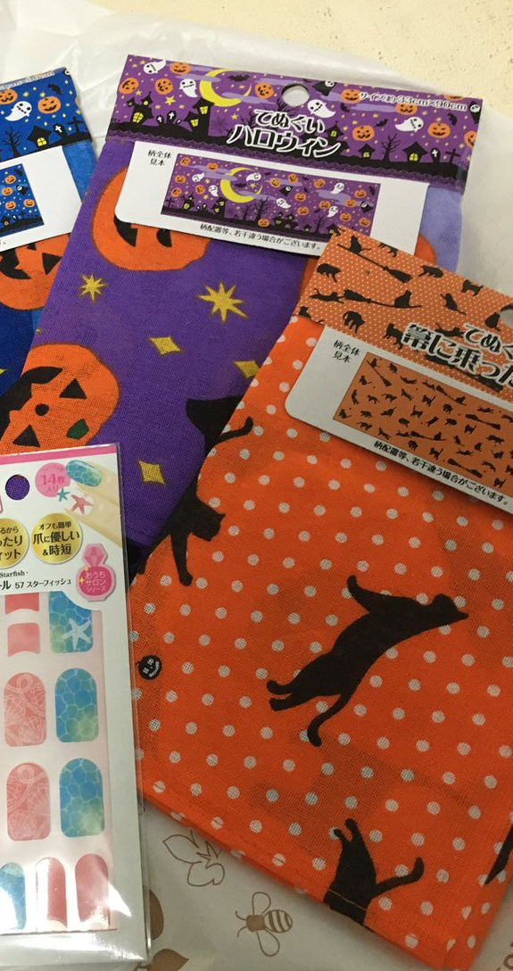 別の日。家の近所の100均でネコ柄とかぼちゃ柄を発見!