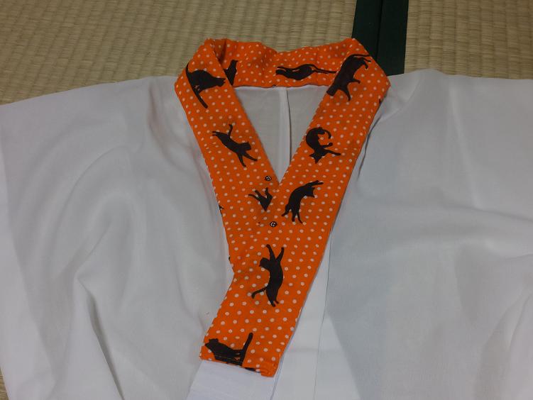 この頃はまだ10月上旬で気温も高かったので、夏用の絽の長襦袢に縫いつけたのですが、今はだいぶ涼しくなってきたので付けかえないといけないです。