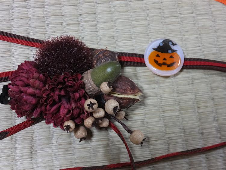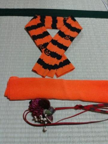 た~からのプレゼントの帯に触発されて、小物もハロウインっぽくしたくなりました。