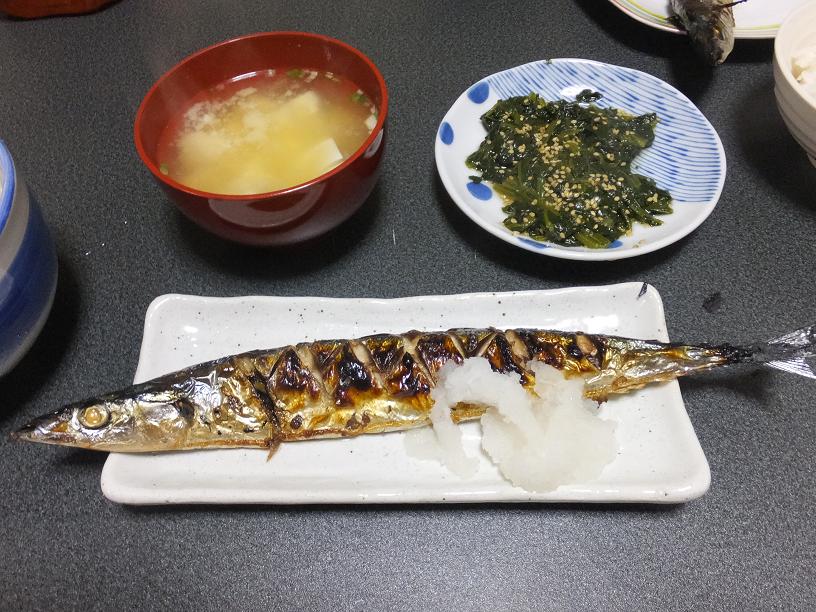 この秋初めてのさんまを焼きました。こんがりいい感じに焼けました。