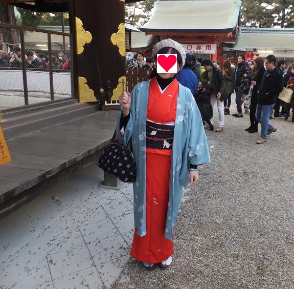 参道ではちっちゃい子供や大人までが食べながら歩いてるます。こんなこともあろうかと、本日はオール・ポリです。赤の小紋は東レシルック。羽織も東レのポリ。