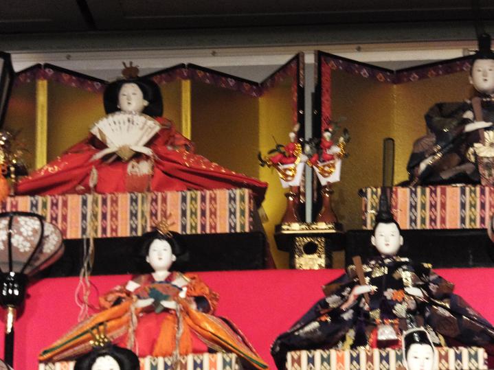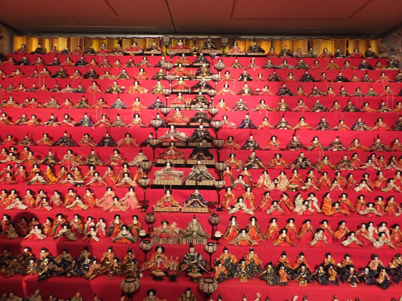 入ってすぐのところに、壁一面、天井まで届く大雛段!