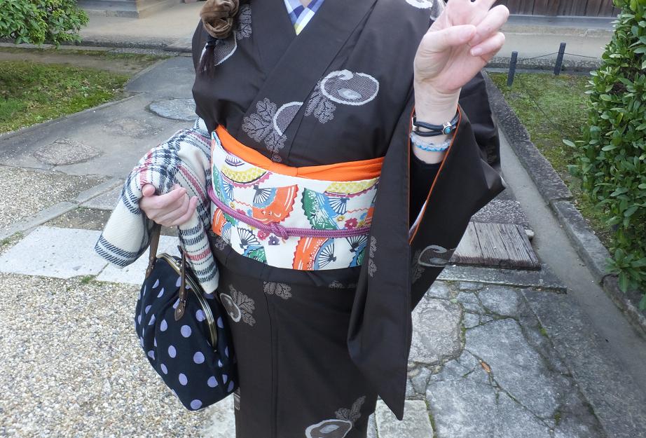 帯揚げはハロウィンの時に買ったオレンジの。帯締めはローズピンク。