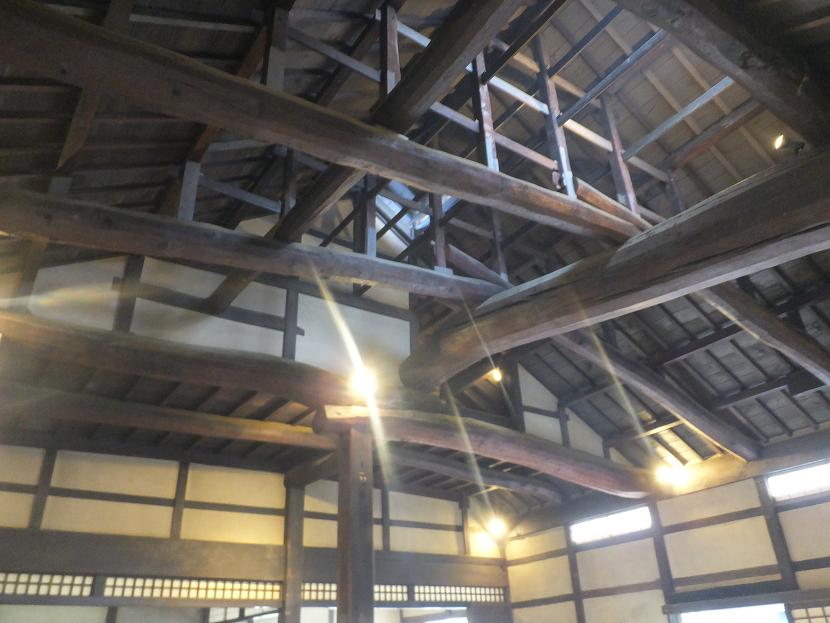 高い天井。梁の木も太いです。