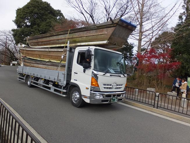 そして何隻かまとめてトラックで亀岡まで運ぶのです。この作業を毎日何回もしてるんだそうです。へー。