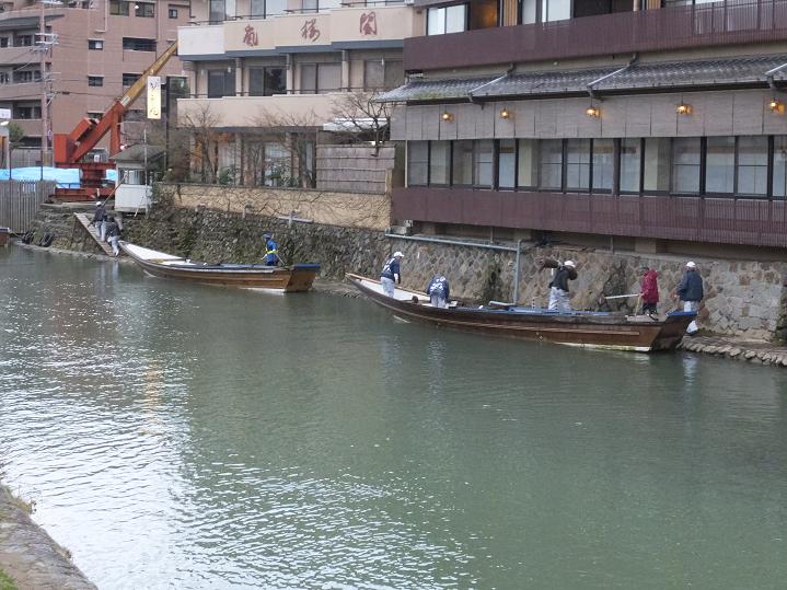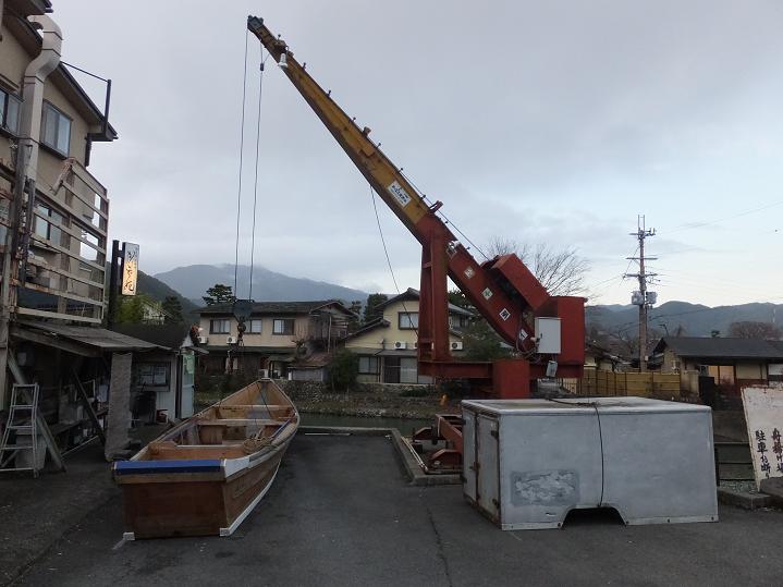 保津川下りの船の陸揚げ場所に来ました。ここからどうやってあげるの?
