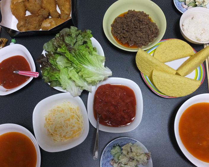 クリスマスの夕食はた~がつくるタコスでした。