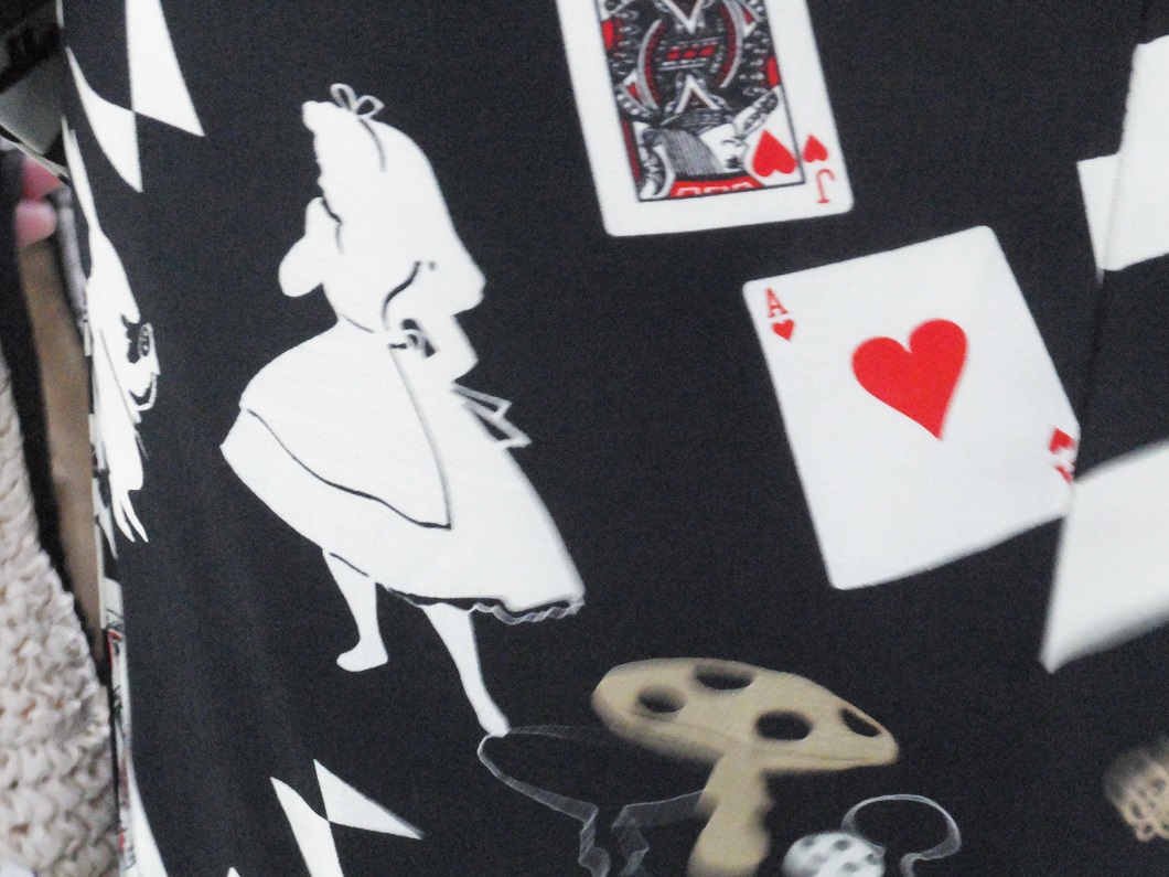 この着物「不思議の国のアリス」柄なのです。袖部分。