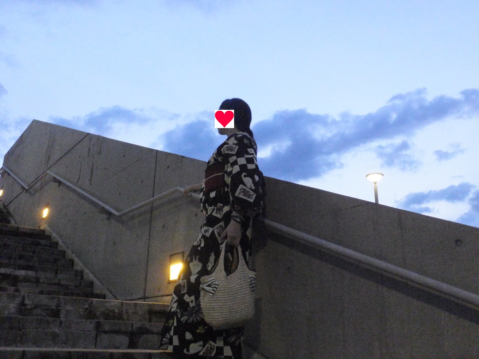 黒の浴衣を単衣風に着てみました。