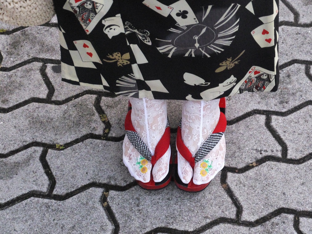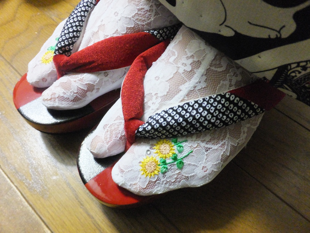 レースの足袋はひまわり柄です。