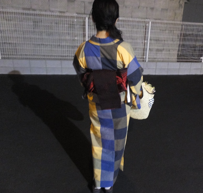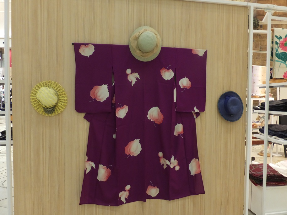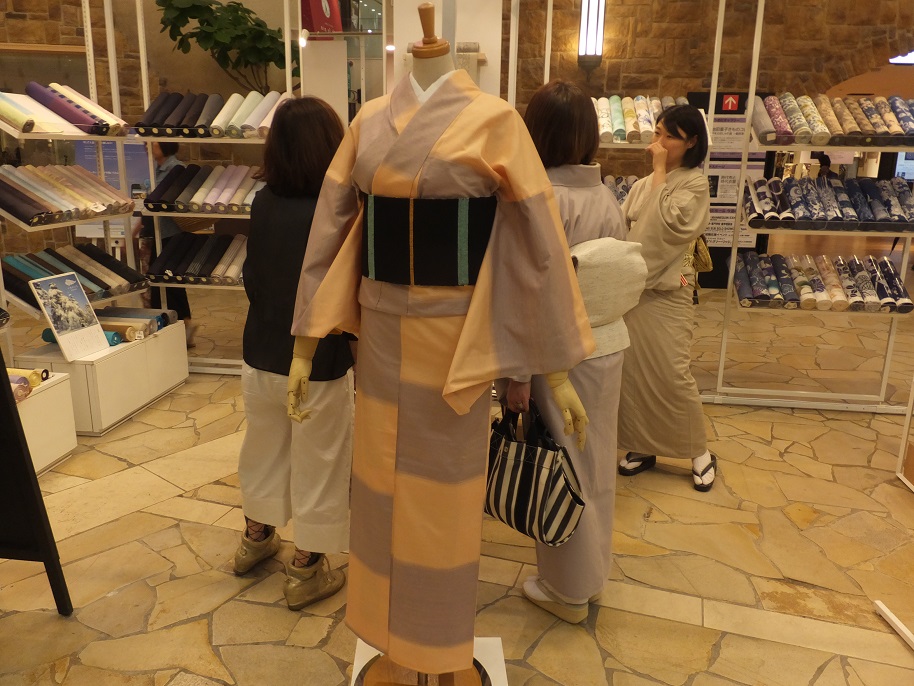 でも店員さんはおはしょりを作らなかったり、工夫して着こなしてます。裄はやはり短い。