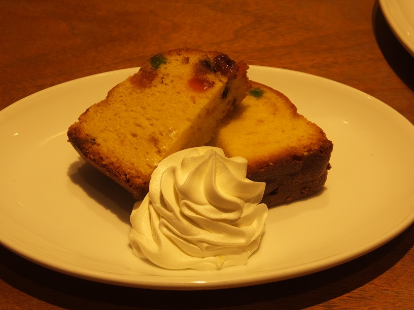 フルーツ・パウンド・ケーキはサービス。