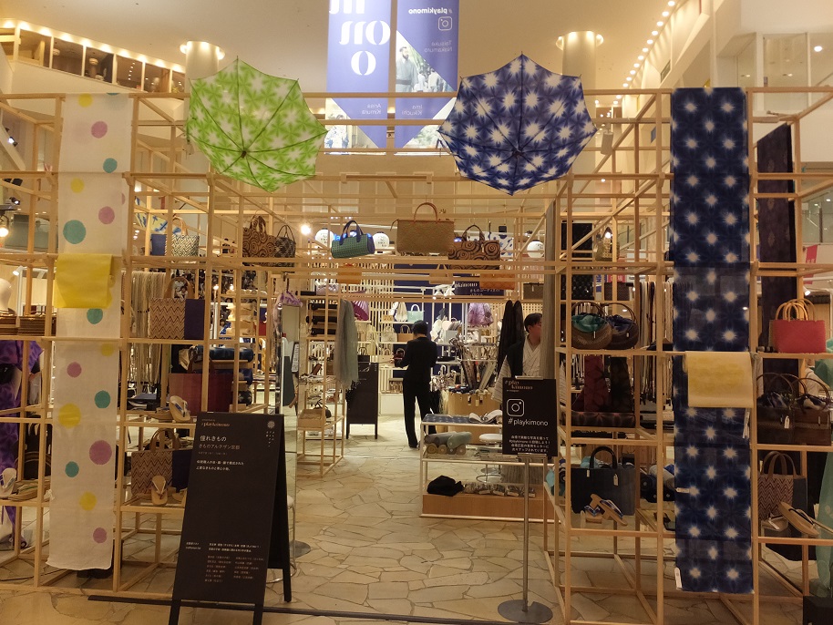 大丸の「くるり」というお店で2年前から気になってた、レモン色の竹楊枝の夏着物を凝りもせずまた眺めに行きました。(もう何回目だろう)