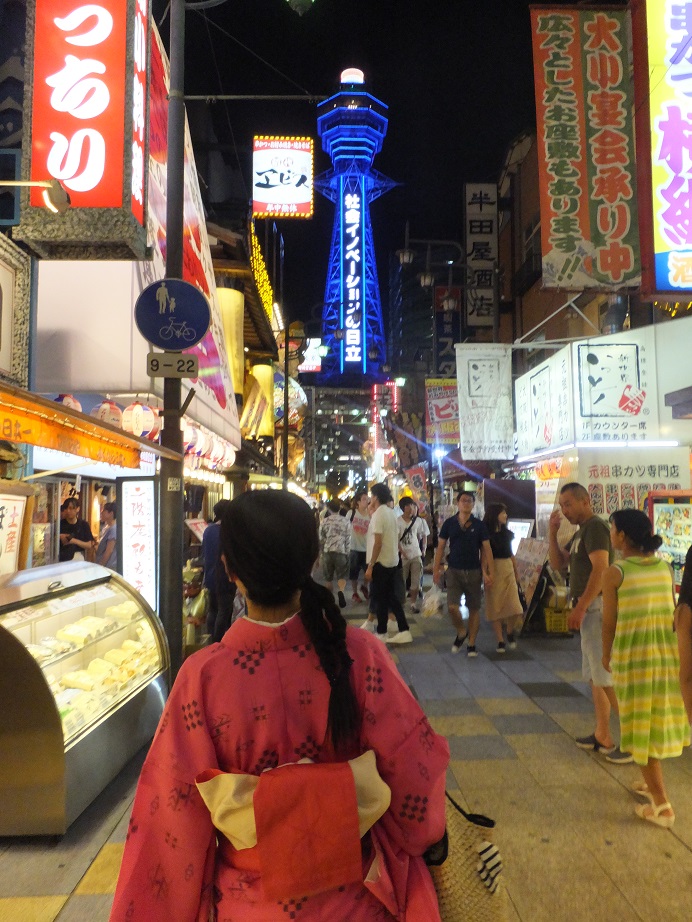 新世界に来ると、さっきとは違ってピンクの着物が目立ちます。