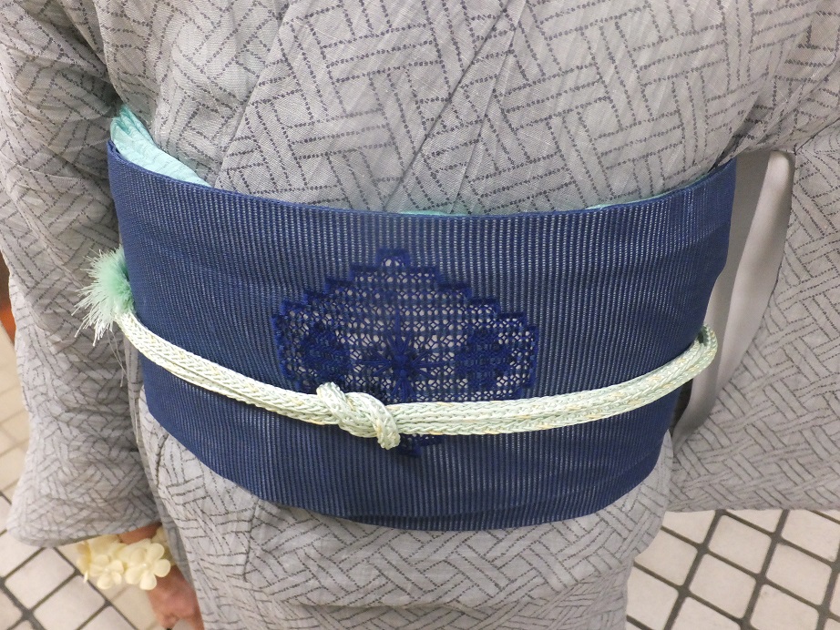 帯締めはおとなしくミント色の丸組のにしました。