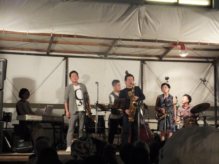 広場に人が集まってるので覗いてみると、ジャズの演奏が始まるとこでした。