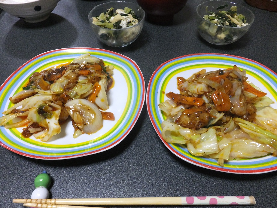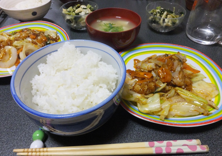 今日は暑かったので濃い味付けのおかずがおいしい。