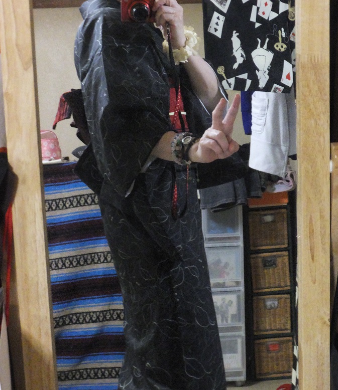 ちょっと丈が短いので腕がかなり出ますが、夏だからええか。