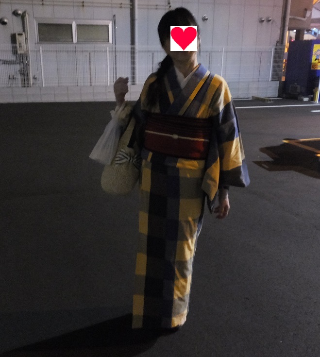 でも店員さんはおはしょりを作らなかったり、工夫して着こなしてます。裄はやはり短い。