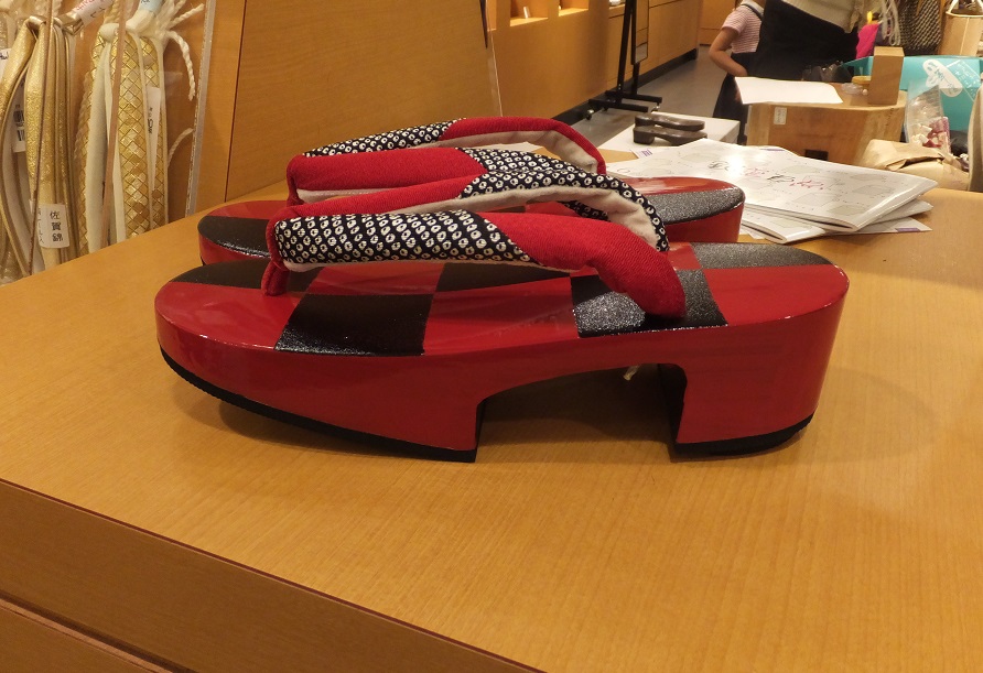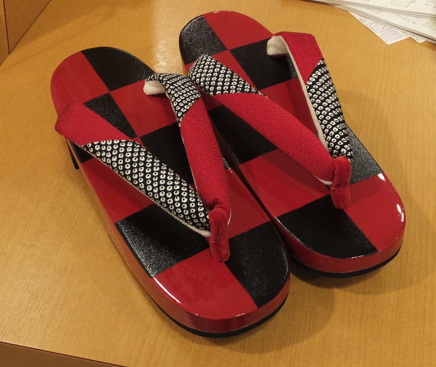 自由自由が気になってたのは赤い市松模様の桐の塗り下駄です。