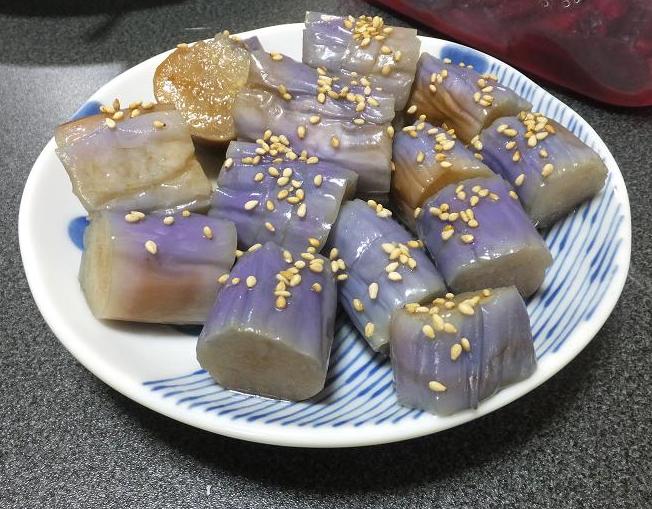 茄子の紫色がキレイに発色して、アメジスト色に仕上がってます。