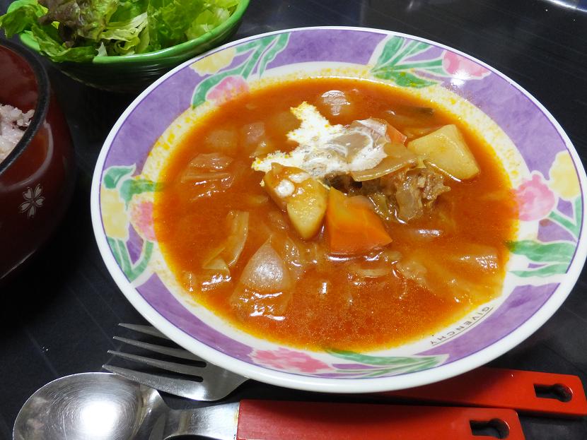 今回はボルシチとタイ・グリーンカレー、レーズンと生姜のカレーでした。
