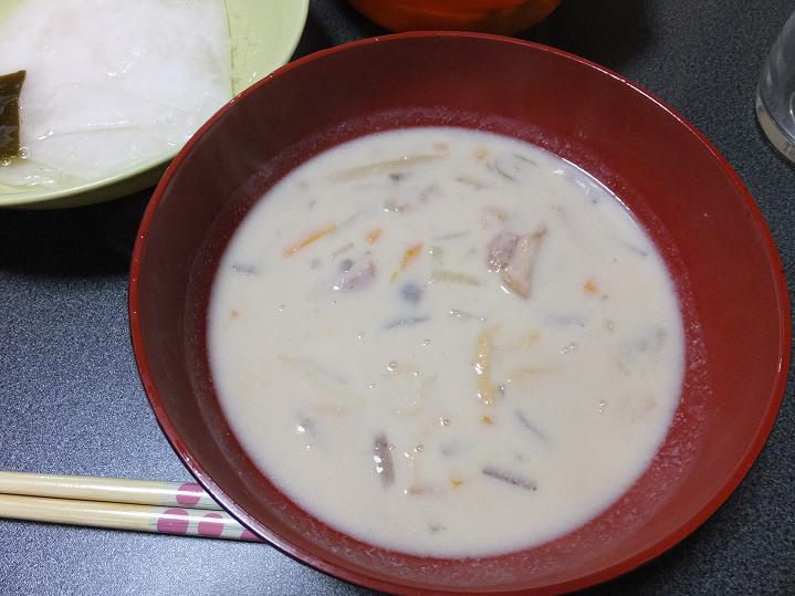 そしてある日は、た~がお土産にもらってきた酒蔵の粕汁。