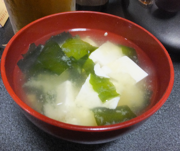 ワカメとお豆腐のお味噌汁。ダシはいりこダシ。