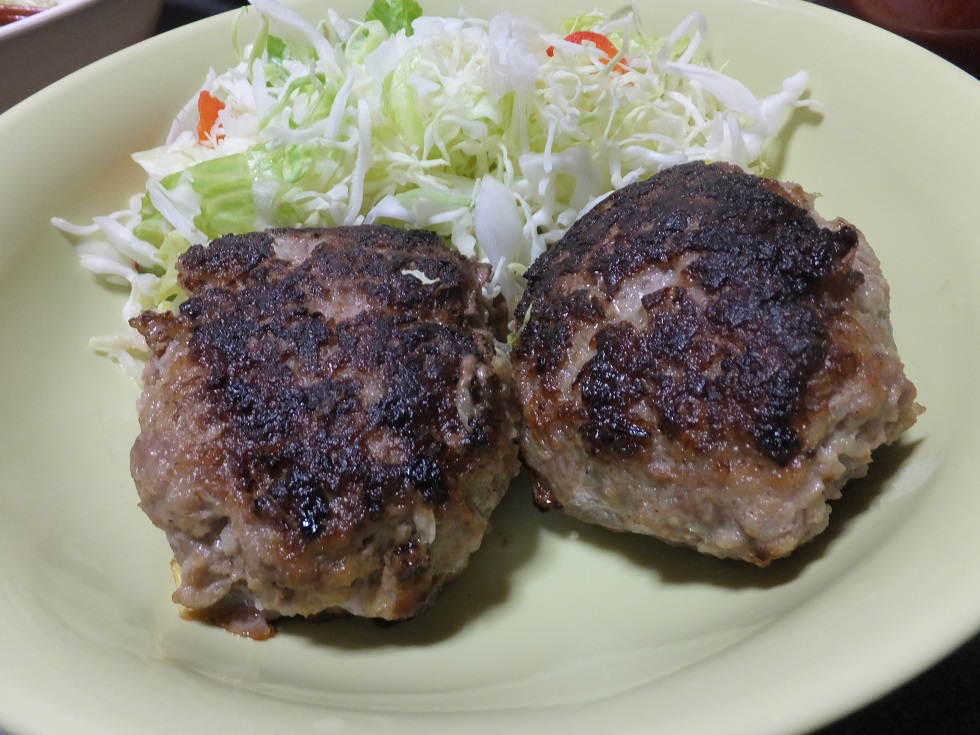 厚みのあるハンバーグです。中まで火を通すのに時間かかりましたが、何も味付けしなくてもむちゃ旨です。