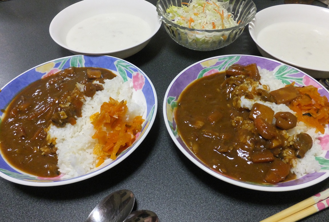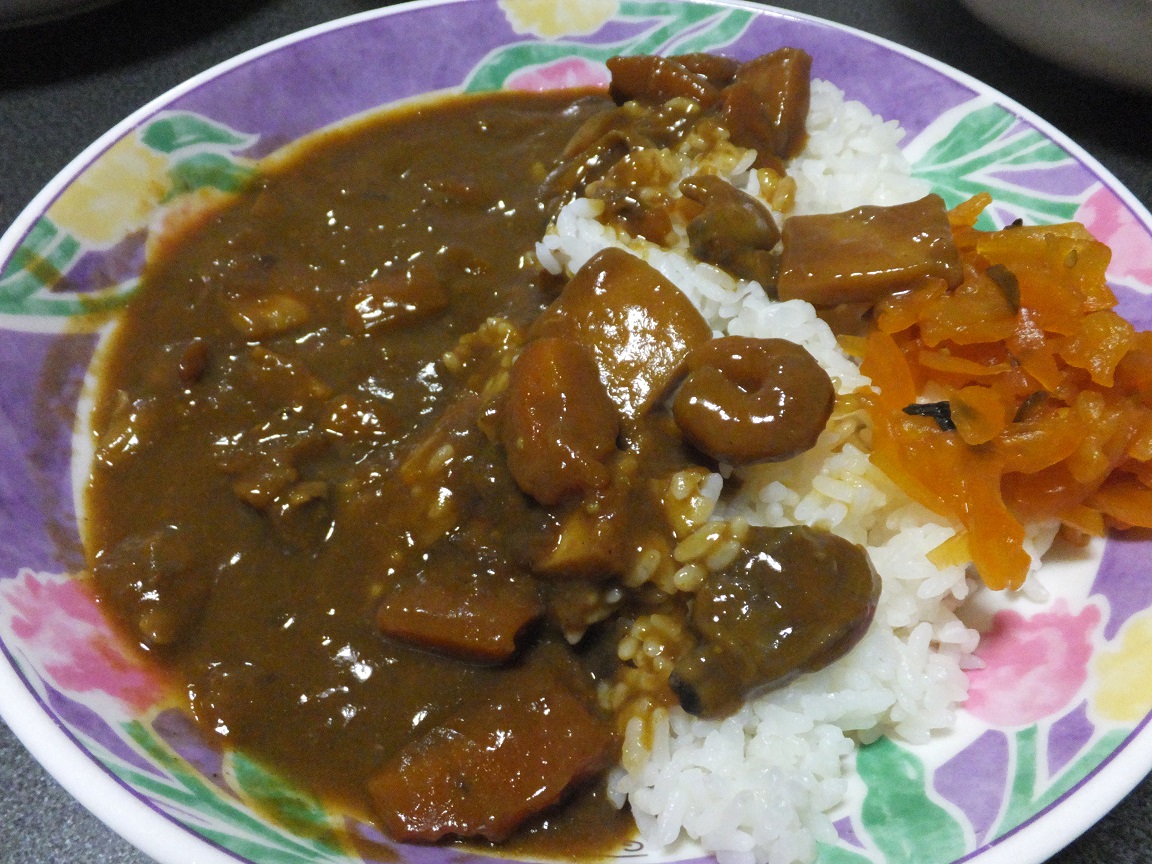 晩ご飯は海老とあさりたっぷりのシーフード・カレーだす。