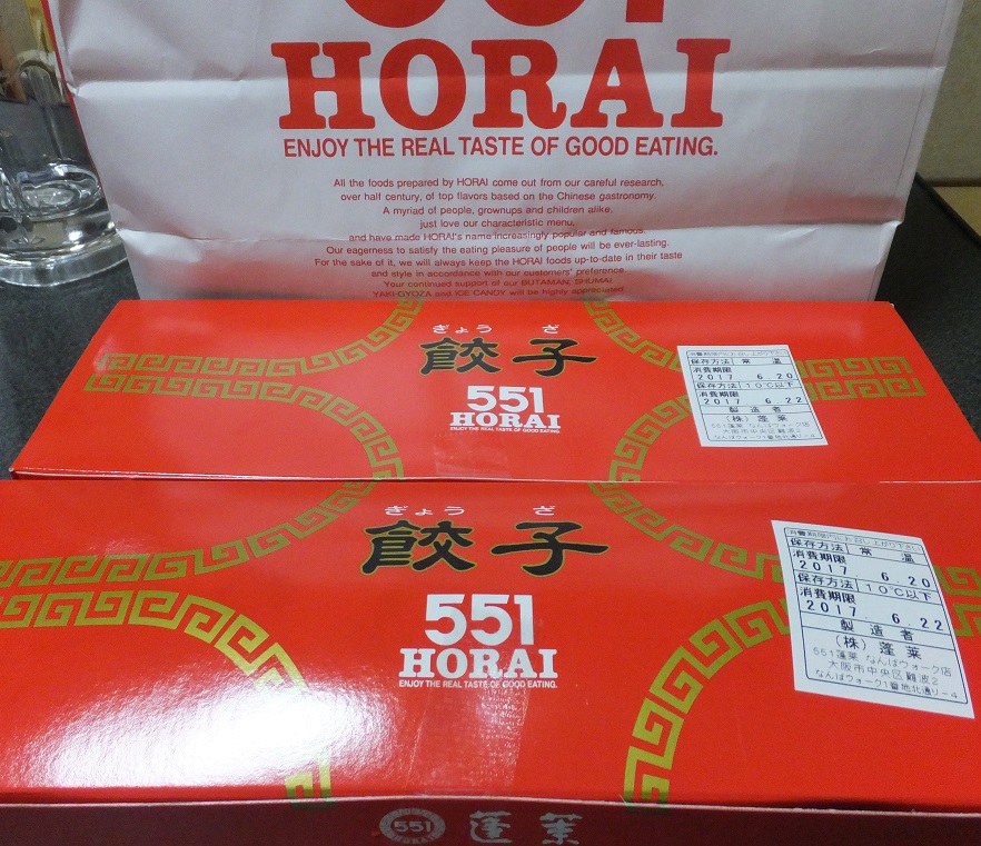 お詫びに次の日は551蓬莱の餃子を買ってきてあげました。