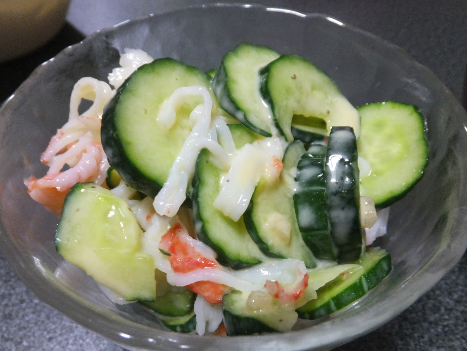 た~が作ったかにかまサラダ。