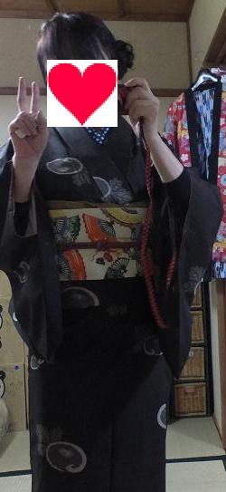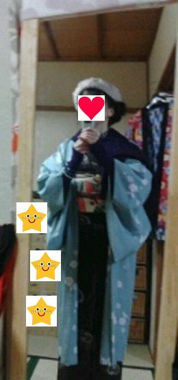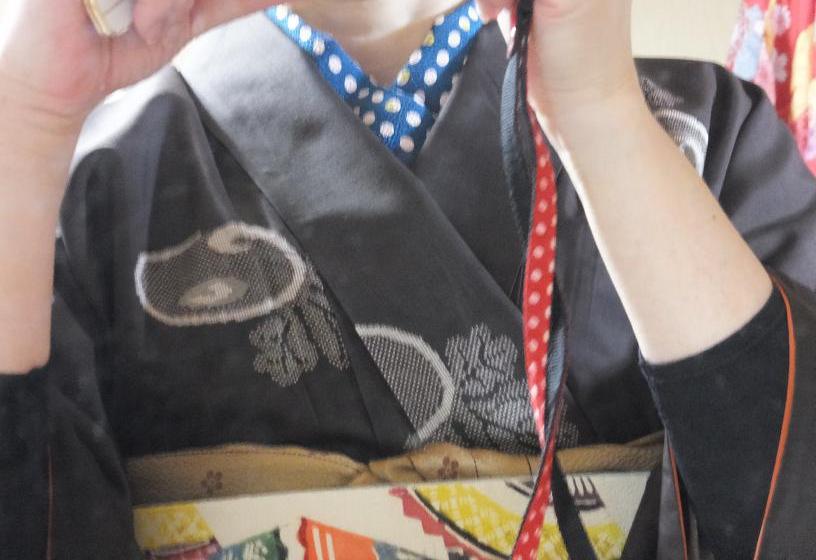 半襟はグリーンのドットだよん