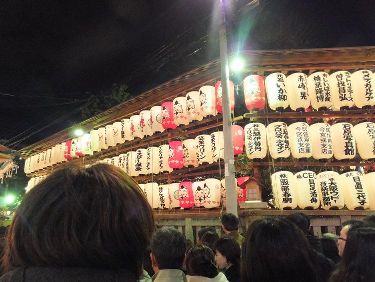 参道まで提灯がずらり。花街戎講の提灯。