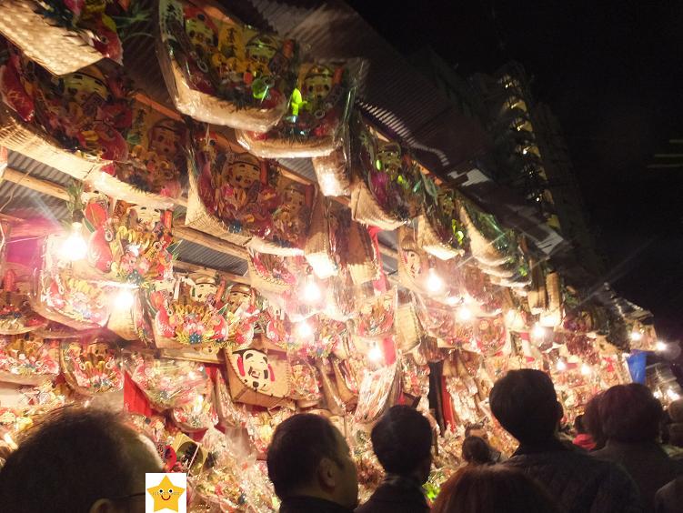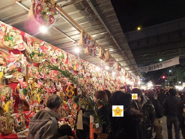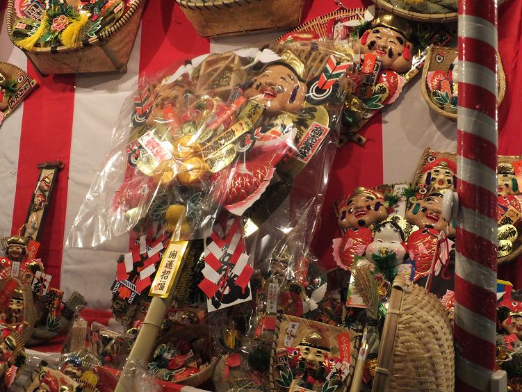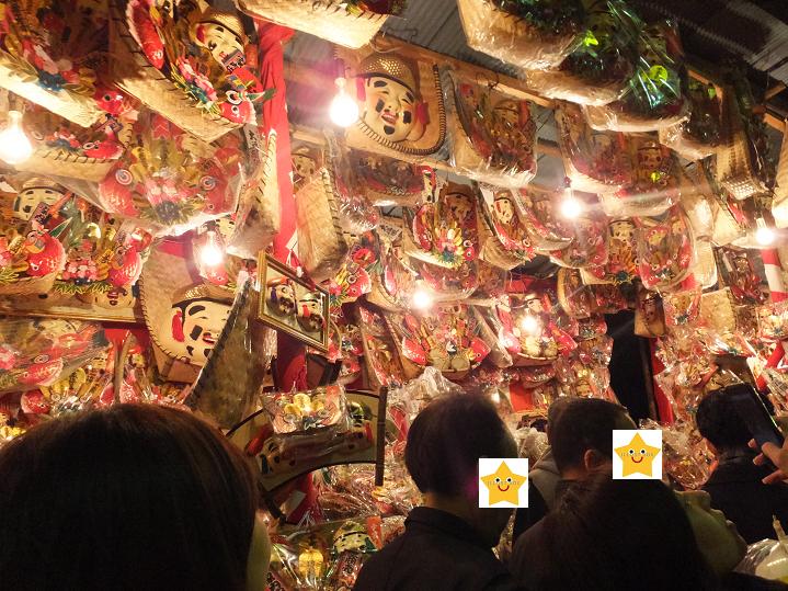 参道は一方通行。帰り道の方に身長より高い熊手を持った人がいました。すごっ!