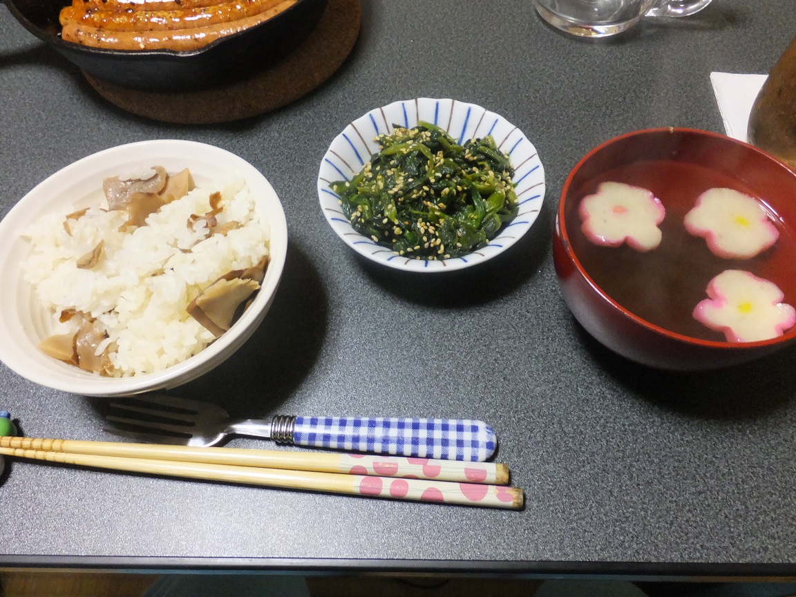 胡麻たっぷりのほうれん草のおひたしに麩ととろろ昆布のお吸い物。