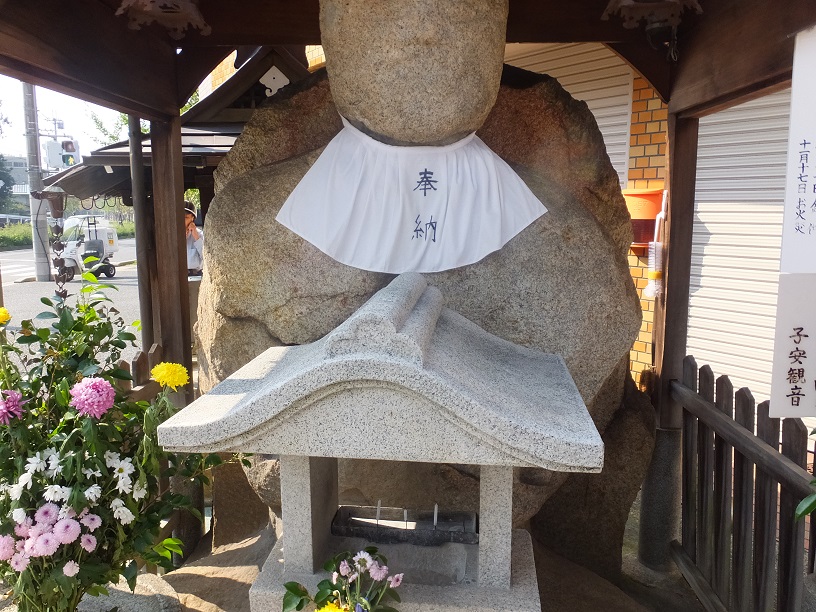 京都から比叡山を超えて滋賀県へつながる道です。この場所は旧白川村の入り口で、入口に子安観音がおります。