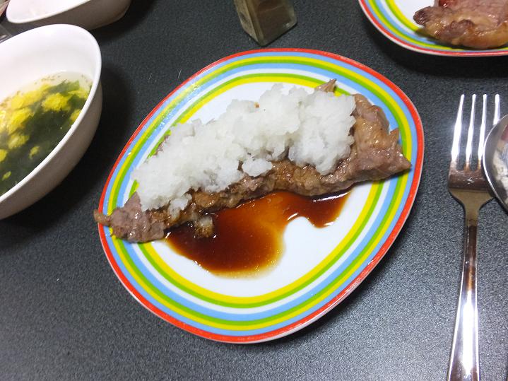 そんな感慨深い日の夕食はた~が焼いてくれたステーキでした。