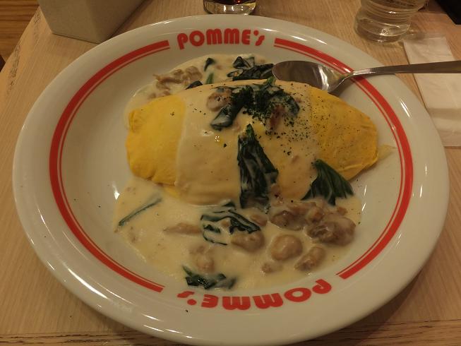 この日も無性に食べたくなって、「ポムの樹」で、きのことほうれん草のクリームソースのオムライスを食べました。