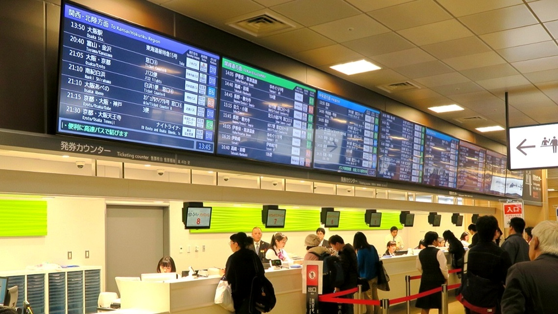 ただ待合所が広くて、各バス会社のカウンターがずら~っと並んで空港のロビーみたいでした。