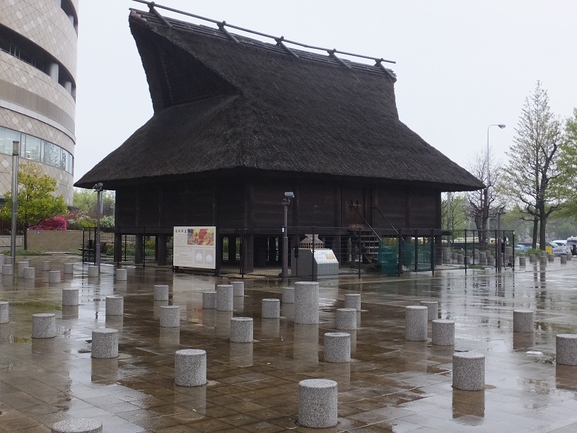 NHK横の大阪歴史博物館の前には復元された高床式倉庫があります。