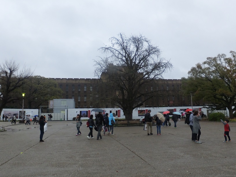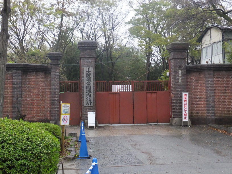 レンガの壁は大阪城公園城内詰所。