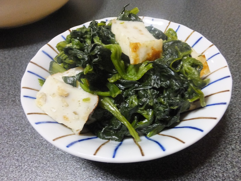 二品目。鱧かまぼことほうれん草のおひたし