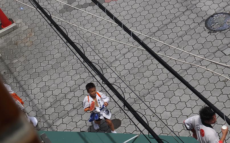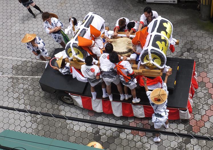 何だろう?と窓の外を覗いたら、子供の山車でした。