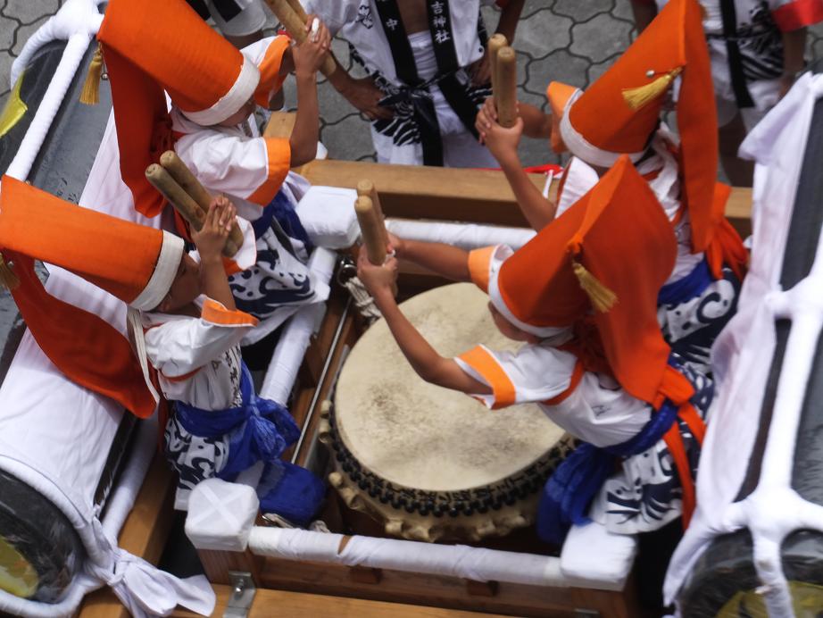 あとで調べたら、港住吉神社の枕太鼓でした。