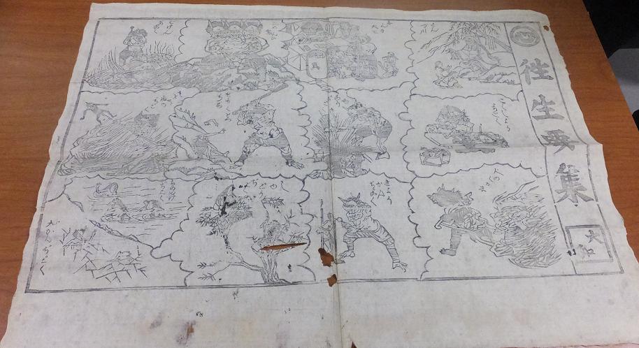 先生が持ってきた往生要集の地獄絵の部分。原本らしいです。 写本の原本かな?