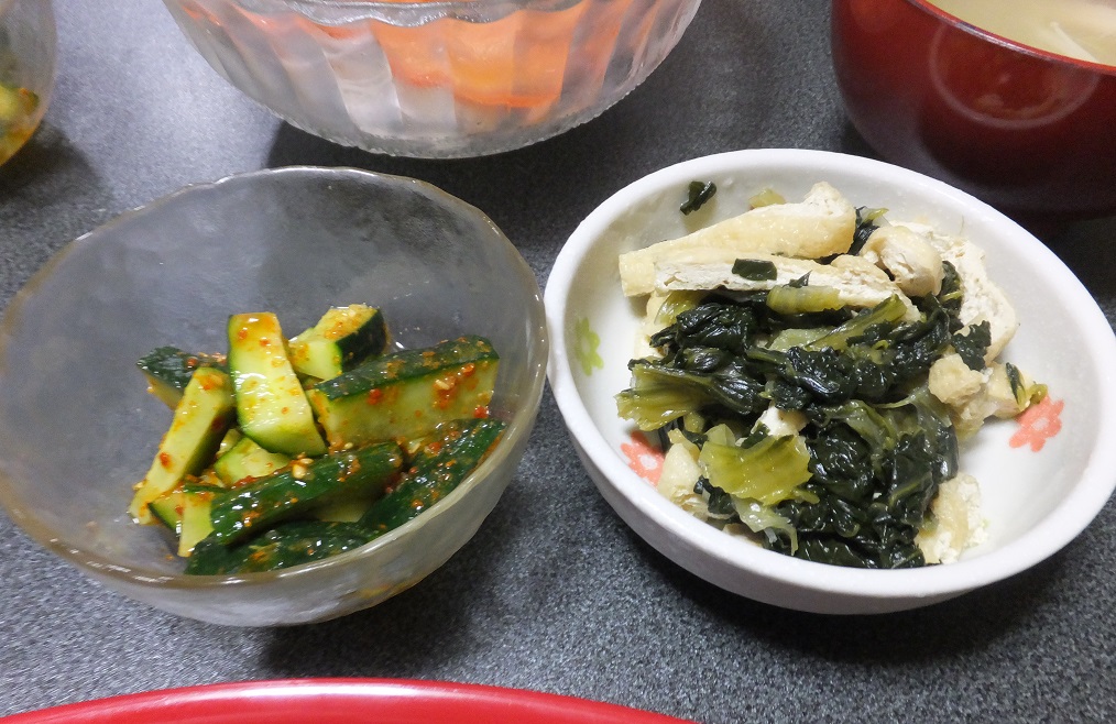 貧血の自由自由に小松菜のおひたしで鉄分補給。