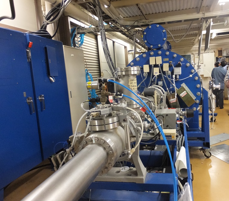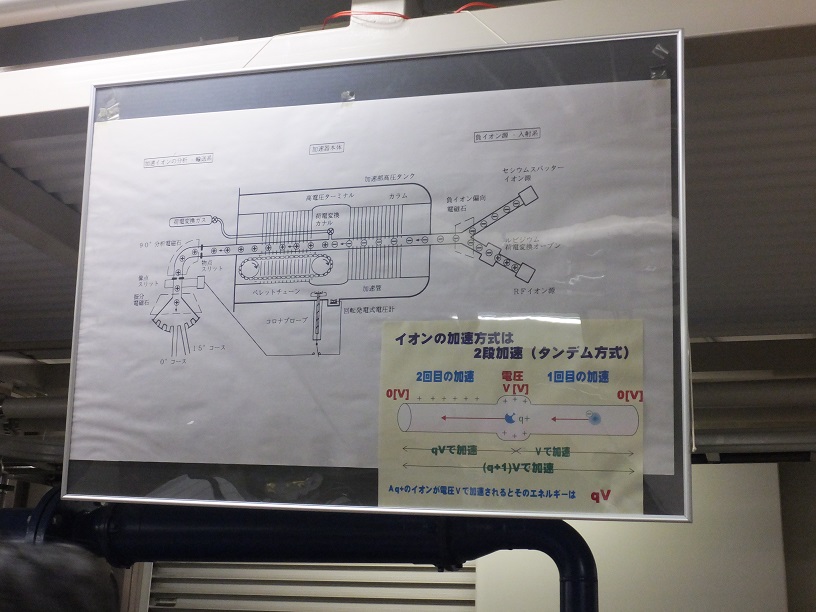 放射線物理学研究室で実際に使われてるバンデグラフ型加速器の変型版、タンデム・バンデグラフ型加速器です。
